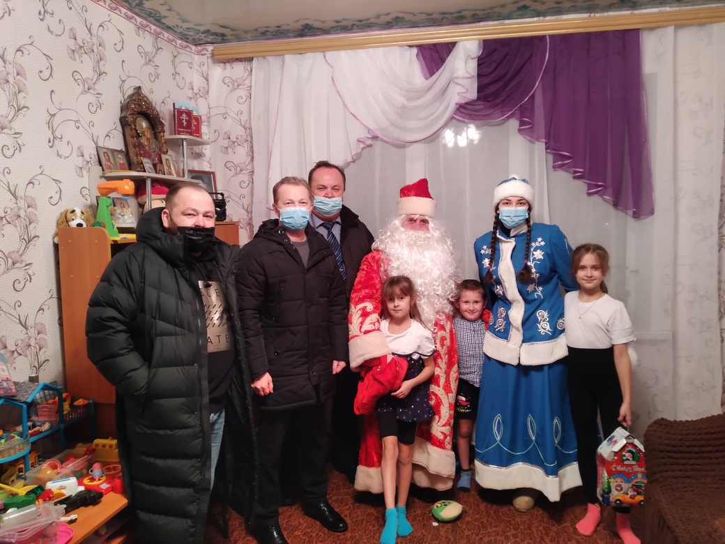 20 декабря председатель Кинешемской общественной организации «Союз десантников» Алексей Фомичёв и Глава Кинешемского района, председатель попечительского совета организации, Владимир Рясин поздравили с наступающими праздниками детей из многодетных семей и их мам в городе Наволоки.