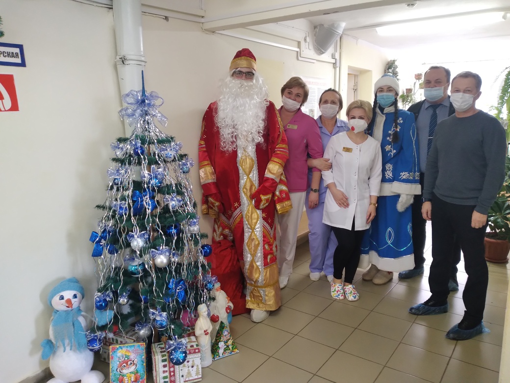 Общественники, Дед Мороз и Снегурочка поздравили с наступающим Новым годом и Рождеством детей и персонал больницы, вручили сладкие подарки.